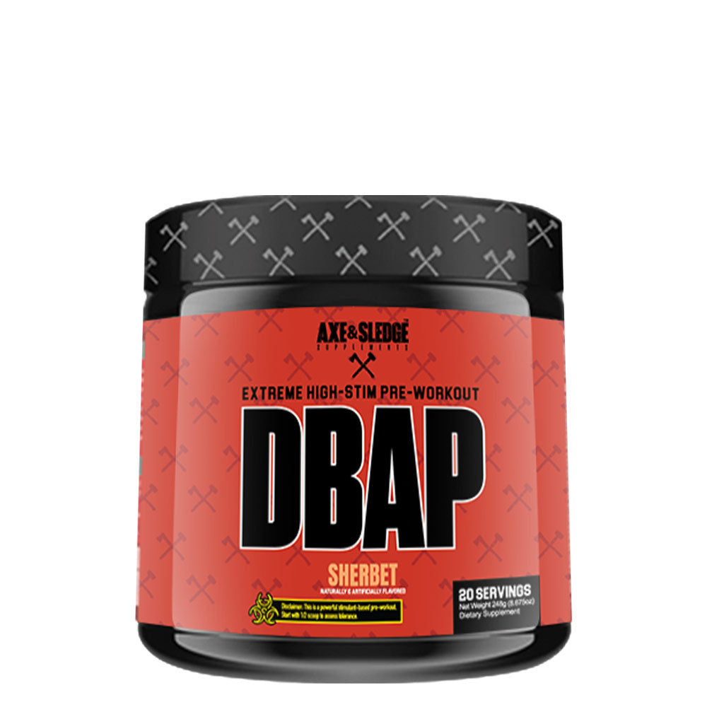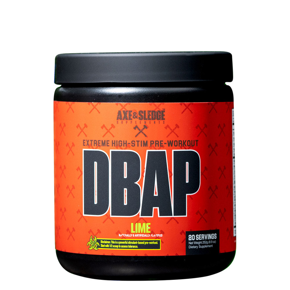 But, unlike many high-stimulants on the market, DBAP doesn't stop there! The mad scientists at Axe & Sledge have also formulated this energy colossus with clinical doses of GBB (Gamma Butyrobetaine) to really turn up the heat and keep you sweating throughout the whole workout as well. But wait... THERE"S STILL MORE! DBAP also contains clinical doses of nootropics L-Tyrosine and Alpha-GPC to provide tunnel vision focus, Beta-Alanine to increase muscular endurance and delay muscle fatigue so you can push your body to the absolute limit, and also Betaine Anhydrous to help increase cellular hydration and increase power/force output.