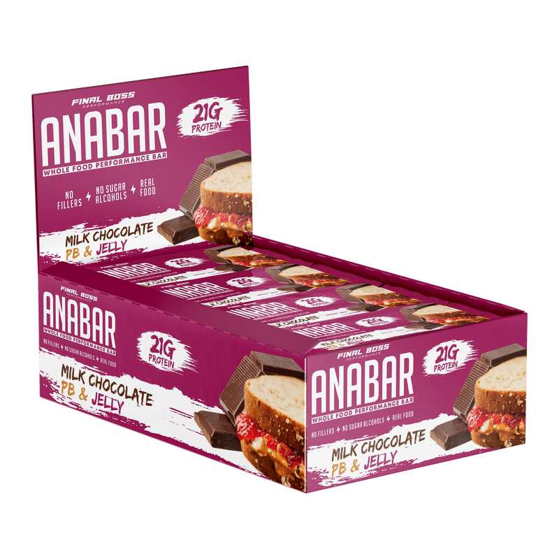 Anabar is formulated using all whole foods such as honey, peanut butter, whey isolate protein, and cocoa powder to deliver a protein bar that is both high quality, along with an incredible flavor profile, minus the guilt that comes along with high sugary snacks that offer really no nourishment, just empty or low quality calories. Anabar delivers 21 grams of quality, all whole food sourced protein per bar and 11 grams of heathy fats to keep you fulfilled and satisfied. With flavors like Peanut Butter & Jelly, White Chocolate Cookies & Cream, Campfire S'mores, and Monster Cookie Crunch, snacking can become a real mouthwatering treat without sacrificing your diet!