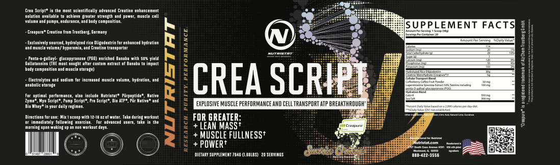 Nutristat Crea Script is the ultimate solution for serious athletes and trainers who are seeking to achieve hyper-saturation and muscle engorging pumps. This potent formula combines the power of creatine and other nutrients with the most digestible and soluble carbohydrate, Hydrolyzed Rice Oligodextrin, to address cell hydration without bloating, forcing nutrients and fluid into skeletal muscle. This unique mechanism of muscle hydration creates an intense muscle growth environment, setting the stage for elevated nutrient delivery into the muscle.