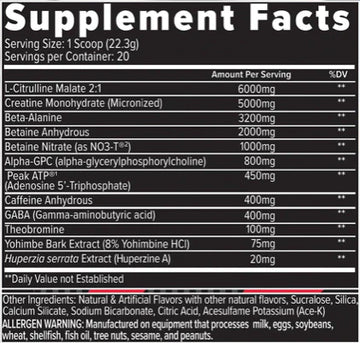 A true fully-loaded pre-workout formula offers a massive list of benefits designed to optimize your workouts. From a powerful surge of energy to push through workouts with increased stamina and intensity while minimizing fatigue to enhanced mental focus and clarity heighten concentration, ensuring a more precise and effective workout experience! But that's far from all... that's just the beginning. Fully-loaded pre-workouts also contain ingredients that greatly boost endurance and strength and help delay muscle fatigue, allowing you to achieve higher performance levels. And who can forget about the holy grail... MASSIVE muscle pumps!! Improved blood flow and oxygen delivery to muscles enhance the pump effect, nutrient supply, and recovery, sending blood surging to the muscles swelling them up like balloons!!