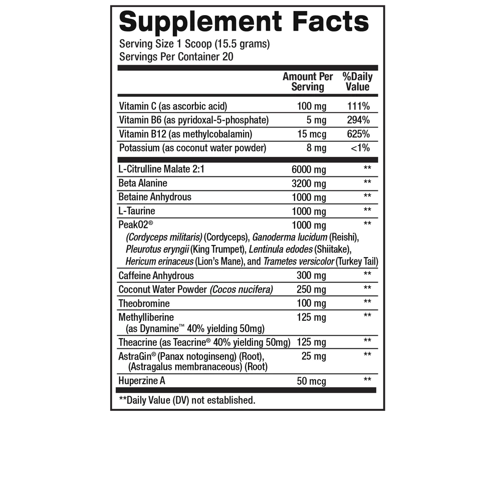 Directions: Mix 1 serving (1 scoop) in 6-8 oz of water and consume 15-30 minutes prior to exercise.