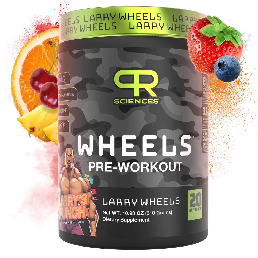 This potent pre-workout is a powerhouse, combining Dynamine, Theacrine, and Caffeine Anhydrous for heightened mental clarity and focus, while Beta Alanine and Citrulline Malate work synergistically to enhance muscle strength, performance, and deliver those monstrous pumps. Bid farewell to fatigue and experience an improved recovery rate as you unleash the hulk within during every workout from the clinical doses of Peak O2 and Caffeine Anhydrous. If you're seeking a pre-workout that mirrors Larry Wheels' intensity, look no further – PR Sciences Wheels Pre-Workout is your ticket to unmatched power and performance!