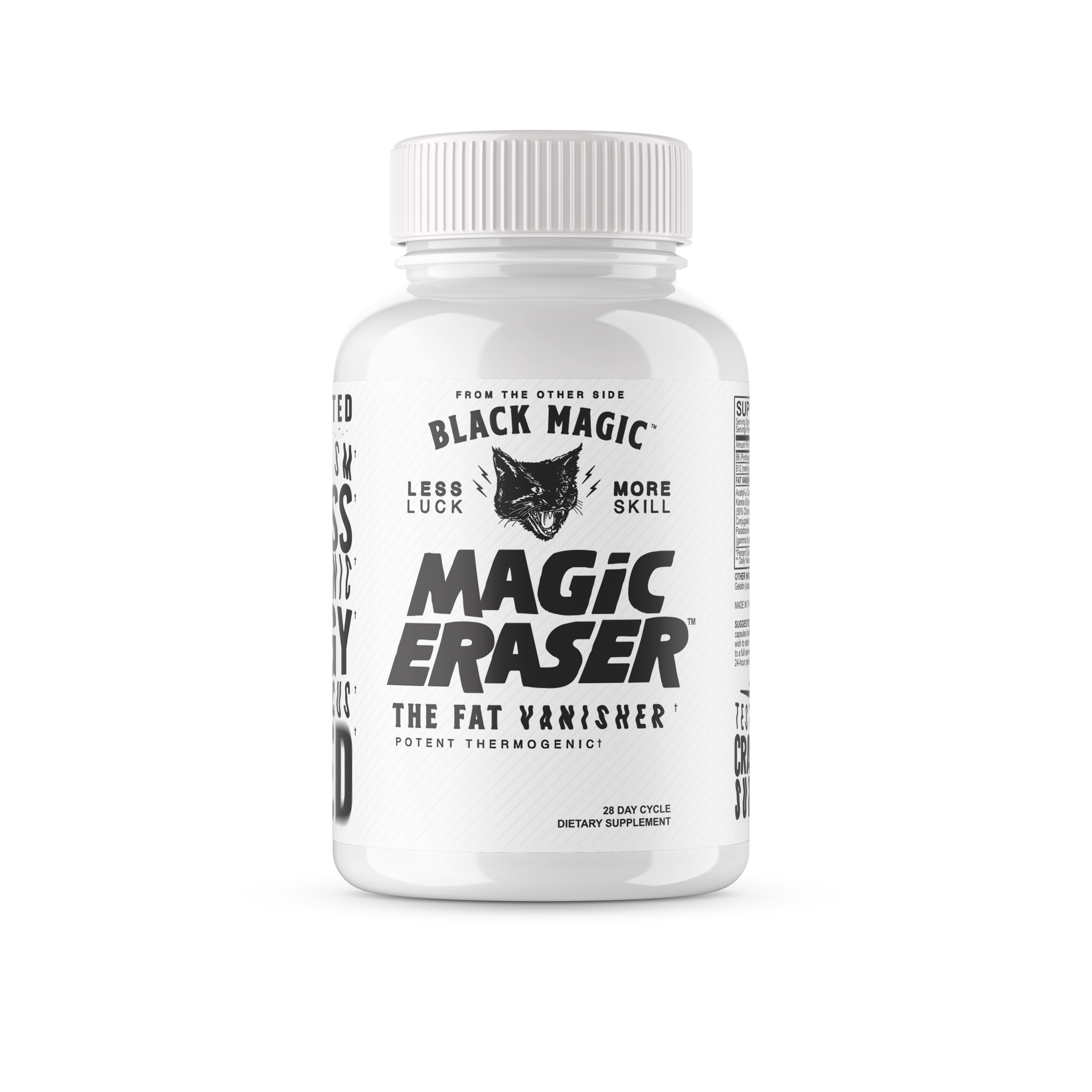 As we all know, dieting can really suck at times! You're eating less, eating very clean, and doing a lot or cardio. This can leave you feeling burned out, unmotivated, and even lethargic at times. Luckily, Black Magic has formulated Magic Eraser, a hard-hitting fat loss formula designed to assist in burning bodyfat while simultaneously providing clean energy, focus, and endurance to your most rigorous cardio sessions. Magic Eraser is a fully loaded fat loss weapon built with ingredients to increase your overall energy and suppress your appetite to keep you on track whether you are in a caloric deficit or just trying to cut some weight to improve your overall look. Loaded with a special blend of hand crafted ingredients that over deliver when it comes to putting your body into fat burning mode and will allow you to achieve your best physique to date!