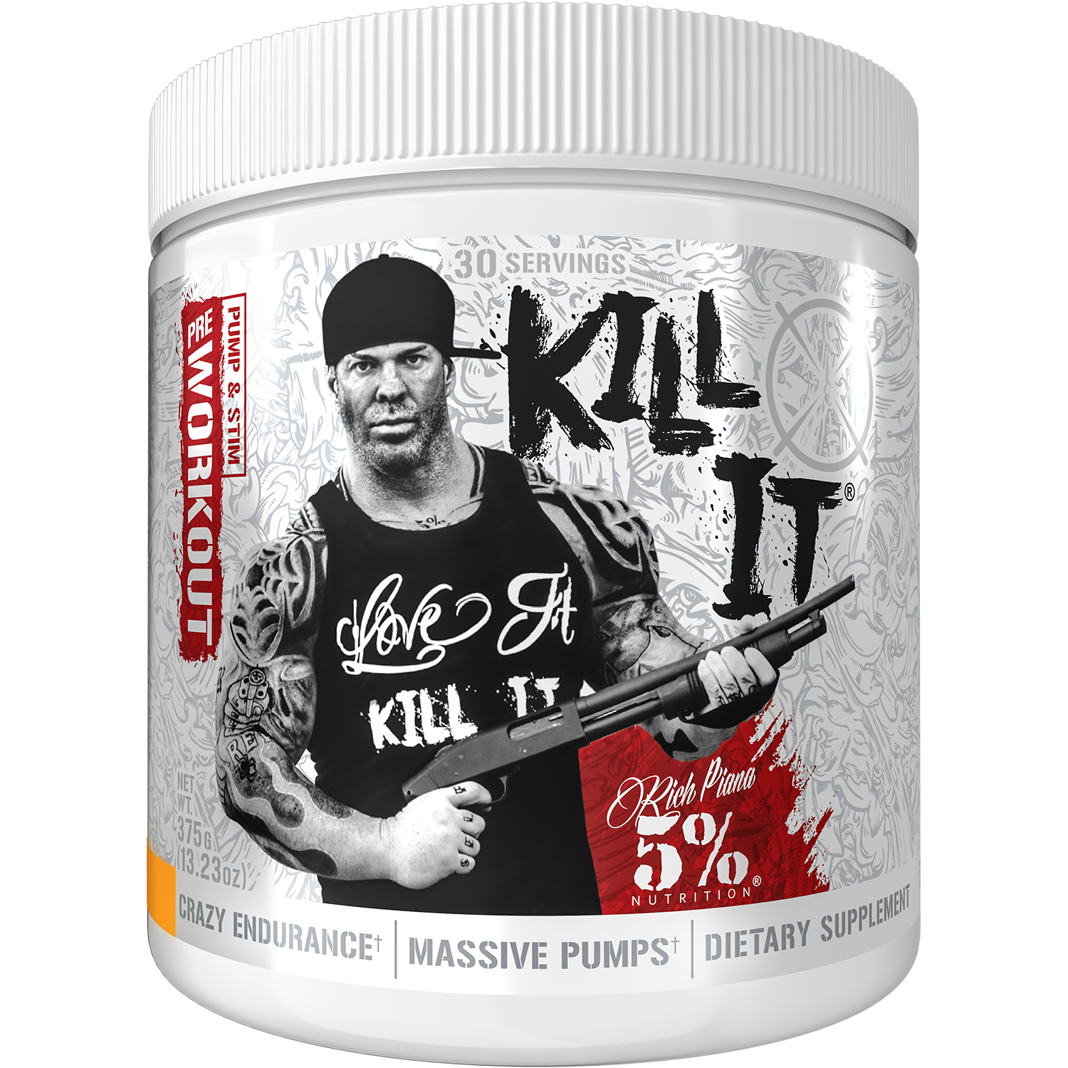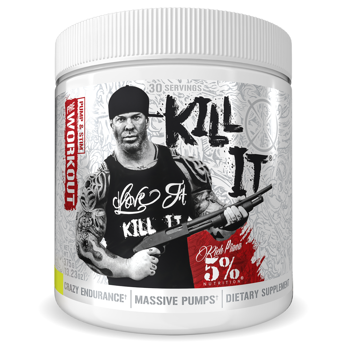 5% Nutrition's Kill It is an all-in-one pre-workout that gives you everything you need to crush it in the gym. Though Kill It contains less stimulants compared to other pre-workouts, it still packs a punch! Kill It contains 250mg of caffeine per serving along with several other high quality ingredients to allow for long lasting energy, intense pumps, laser focus, and increased levels of strength and endurance. This makes Kill It a great first choice for those who are new to pre-workouts, or anyone looking for less caffeine and more performance.