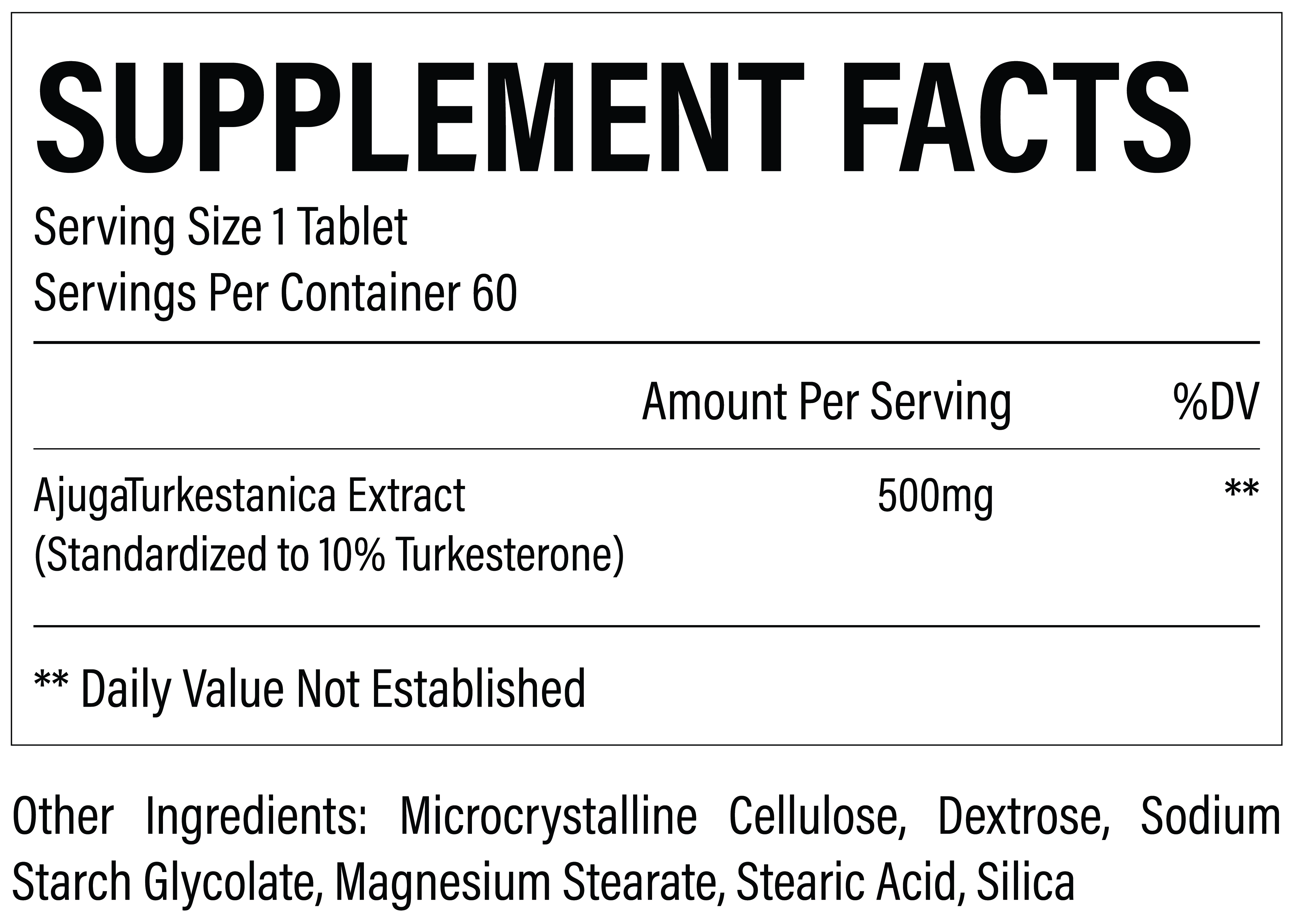Raw Nutrition Turkesterone is formulated with a whopping 500mg dose of Turkesterone (Ajuga turkestanica) per serving, with a recommended 2 servings taken throughout the day. This dosage when taken on a 8-12 week cycle has been shown to provide peak benefits in both gaining lean muscle mass and strength/power.