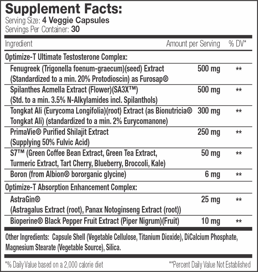 Unlock your peak potential with SNS Optimize-T! This powerful supplement is designed to support healthy testosterone levels, enhance physical performance, and promote muscle growth. Packed with scientifically-backed ingredients like D-Aspartic Acid, Fenugreek Extract, and Boron, Optimize-T is formulated for those looking to elevate their strength, endurance, and vitality. Whether you’re hitting the gym hard or just looking to maintain healthy testosterone, Optimize-T provides the support you need without the use of banned substances. Stay focused, stay driven, and take your fitness to the next level with Optimize-T!