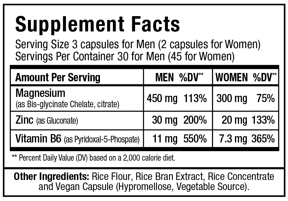 Directions: Men take 3 (women take 2) capsules daily, preferably on an empty stomach 30-60 minutes before bedtime. For best results, avoid taking with dairy or other calcium containing foods or supplements.