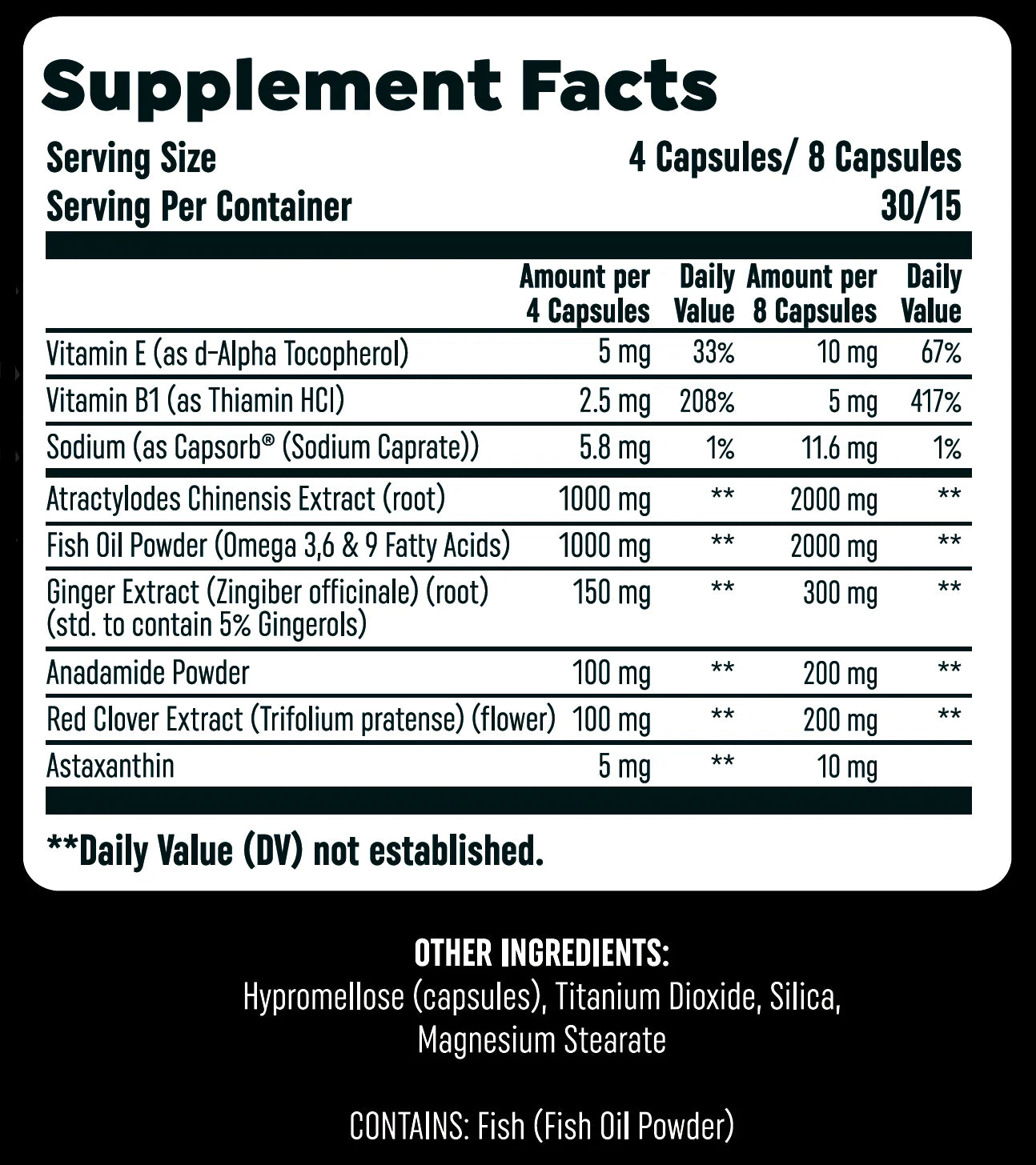 • Vitamin E & Astaxanthin: Protects active ingredients from oxidation.