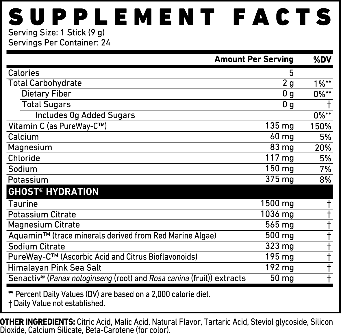 Stay ahead of the game with Ghost Hydration Sticks, your secret weapon for ultimate hydration and peak performance. Packed with a blend of electrolytes, vitamins, and minerals, these sticks are designed to keep you hydrated, energized, and ready to crush your fitness goals. Whether you're hitting the gym, running a marathon, or just need a pick-me-up during a busy day, Ghost Hydration Sticks deliver the essential nutrients your body needs to perform at its best. No more worrying about dehydration or fatigue – with Ghost Hydration Sticks, you'll stay refreshed and revitalized, ready to tackle any challenge that comes your way.