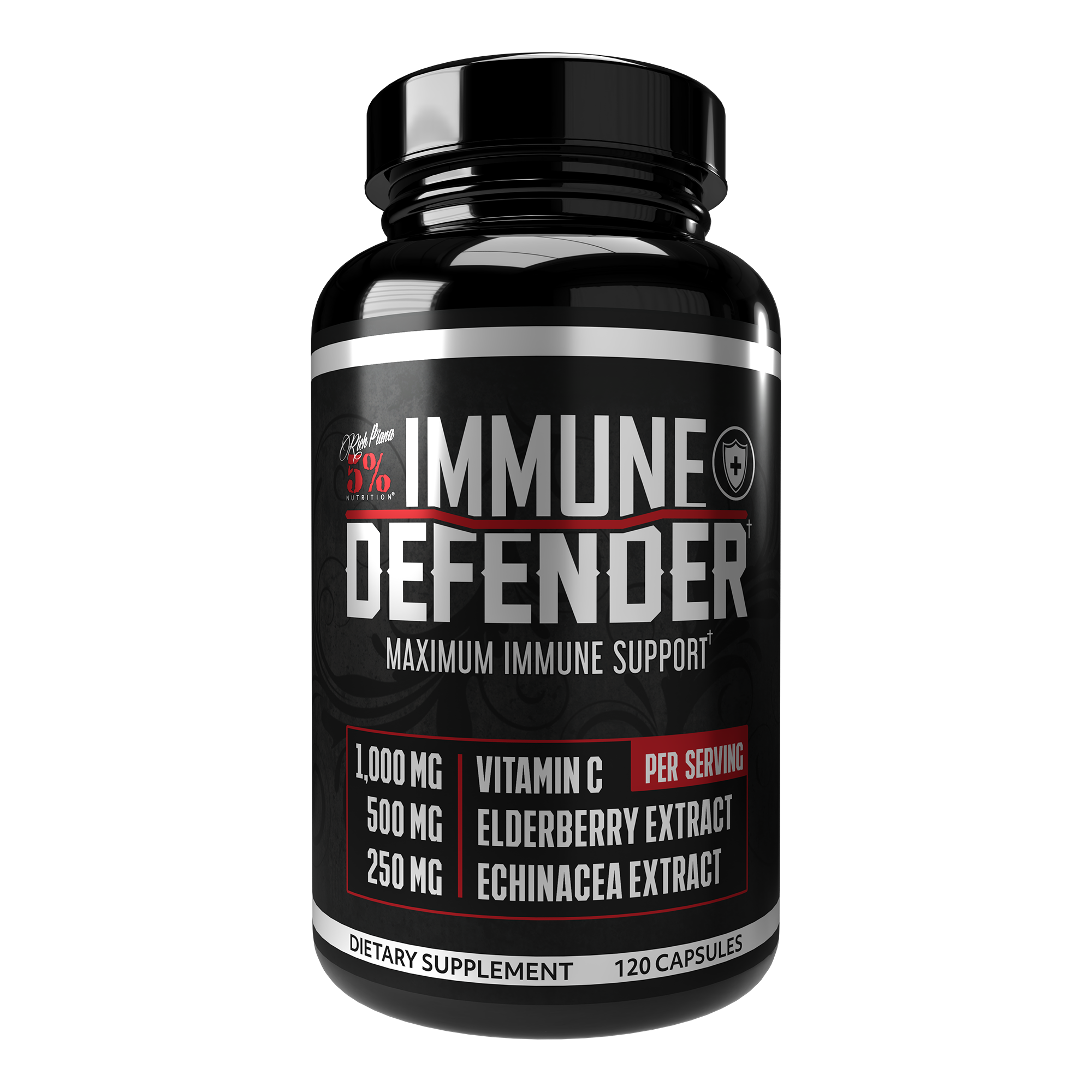 5% NUTRITION IMMUNE DEFENDER 120 CAPSULES If you are looking to boost your immune system, check out 5% Nutrition Immune Defender. 5% Nutrition Immune Defender supports your immune health and function and boosts your immune system. This supplement is packed with immune support like Vitamin C, Echinacea, and More. 5% Nutrition Immune Defender contains a whopping 1000mg of Vitamin C and helps increase antioxidant production. Pick up a bottle today! 5% NUTRITION IMMUNE DEFENDER 120 CAPSULESPRODUCT BENEFITS Supports Immune Health & Function Increased Antioxidant Protection Packed With Immune Support Boosts Immune System 1000mg Of Vitamin C Synergistic Formula