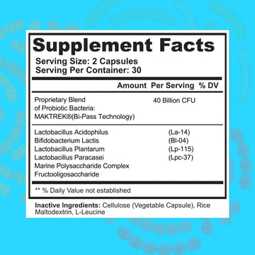 SelfE Probiotics 40 is a 40 billion CFU active cultures probiotic formulated with MakTrek Bi-Pass Technology to ensure effectiveness and provide up to 20x more effective delivery of these cultures.