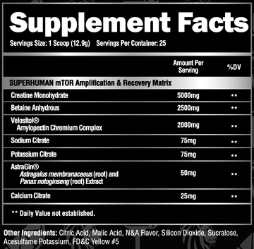 Directions: Mix 1 Anabolic Scoop of SUPERHUMAN POST with 8-12oz. of water immediately after your last set to deliver your muscles the anabolic fuel they deserve.