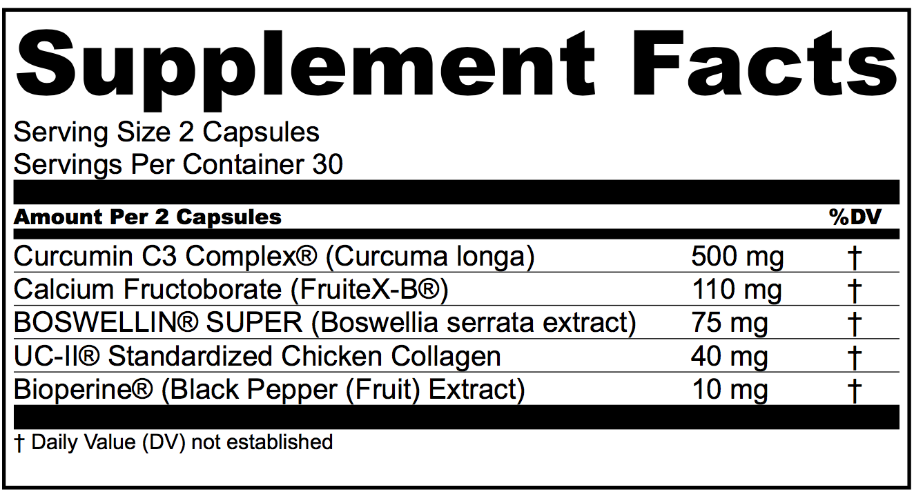 WellnessSeries Joint Support Have you ever taken a joint supplement for months with little-to-no improvement? It wouldn’t surprise us if that’s the case since most of the joint support formulas on the market provide little more than glucosamine and chondroitin, both of which remain largely unproven in clinical trials. We’ve taken the initiative to create one of the industry’s most comprehensive joint supplements, made exclusively with five of the best clinically-studied ingredients for promoting healthy joint integrity, easing inflammation, and fighting oxidative stress. This innovative joint support formula packs evidence-based doses of patented Curcumin C3 Complex®, FruiteX-B®, Boswellin® Super, UC-II® Collagen, and Bioperine®. By utilizing these standardized and stringently tested ingredients, Transparent Labs Joint Support can help protect, rebuild, and revitalize joints so you can get back to the exercises/activities you love.