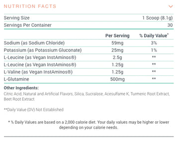 Alani Nu BCAA is loaded with 5 grams of BCAAs per serving to help drastically boost muscular recovery so you can get back in the gym faster, increase muscular endurance so you can push longer and harder in the gym or on the field, enhance muscle protein synthesis to help your body adapt to new training volumes, and build more lean muscle mass. On top of the 5 grams of muscle building BCAAs, Alani Nu included 500mg of Glutamine to help further enhance muscular recovery so you can continue to push your body to the limits and get back in the gym to do it all over again!!