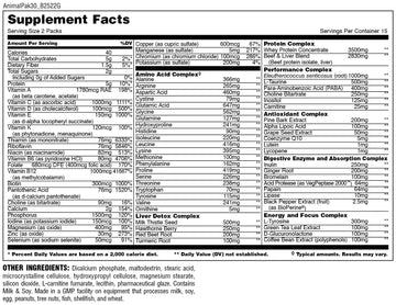- Protein Complex: Animal Pak features a blend of whey protein concentrate, whey protein isolate, beef protein isolate, and liver to support muscle protein synthesis and recovery.