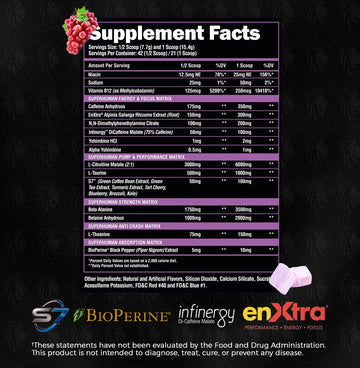 Directions: Superhuman Extreme is our STRONGEST formula! Mix 1/2 scoop (1 serving) with 8-10 ounces of water 15 minutes before your toughest workouts. Mix 1 scoop (2 servings) when you need to go full American Psycho in the gym!