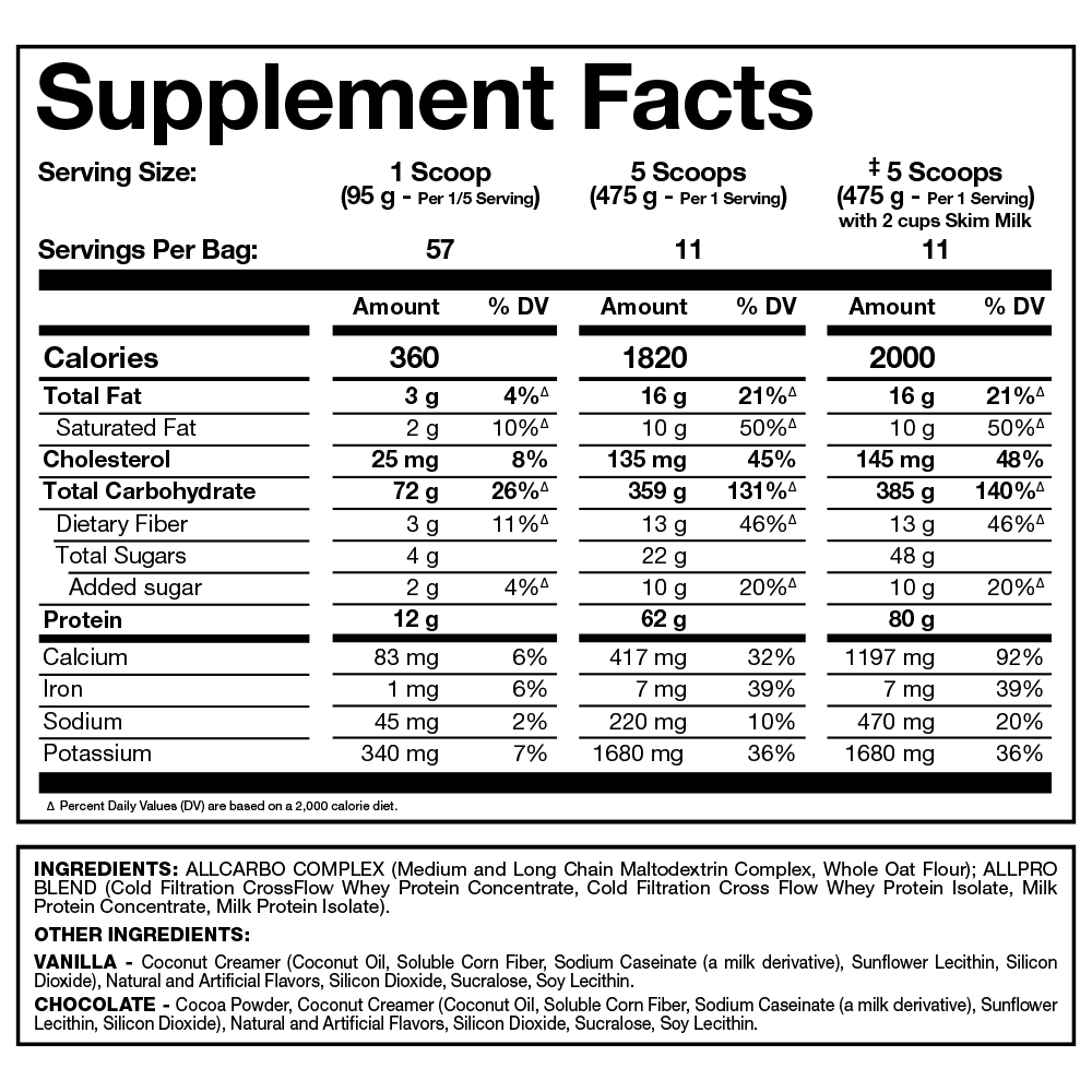 Allmax All Mass Advanced Gainer is the ultimate solution for athletes seeking to optimize their post-workout recovery and pack on lean muscle mass efficiently. Recognizing the common challenge athletes face in consuming adequate calories to support their training demands, this advanced gainer offers a game-changing approach. With each serving delivering up to a remarkable 2000 nutrient dense calories, it eliminates the laborious task of meticulously tracking and consuming massive quantities of food daily. This groundbreaking formula effectively streamlines the post-workout routine, turning it into a hassle-free and successful endeavor, especially beneficial for the aspiring young athlete committed to achieving exceptional results.