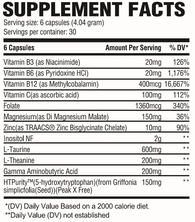 Calm starts off with vigorous doses of GABA (Gamma-Aminobutyric Acid), Inositol, HTpurity, and L-Theanine. GABA is the body's primary inhibitory neurotransmitter that blocks, or inhibits, certain brain signals and decreases activity in your nervous system. When GABA attaches to a protein in your brain known as a GABA receptor, it produces a calming effect. This can help with feelings of anxiety, stress, and fear. Inositol improves the effectiveness of major neurotransmitters in your brain, such as GABA, boosting alertness, concentration, focus, motivation and memory. L-theanine helps smooth out brain wave patterns, much like meditation, calms without impairing cognitive ability, reduces stress and levels of cortisol (the stress hormone) in saliva, and also lowers blood pressure. HTpurity (5-HTP) has a very synergistic effect when paired with GABA to help control anxiety and increase serotonin levels to heighten mood, and improve symptoms of depression.