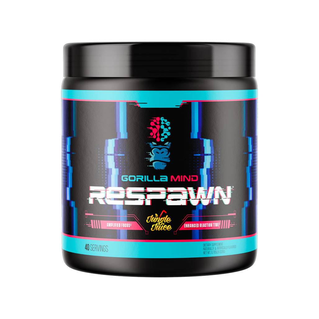 Respawn contains a synergistic blend of ingredients that enhance critical gaming skills such as accuracy, psychomotor vigilance, decision-making, map awareness, multitasking, working memory, and communication. Unlike other gaming supplements on the market that are just flavored caffeine powder with pixie-dusted antioxidants and amino acids, Derek and the minds at Gorilla Mind formulated Respawn to contain clinically dosed amounts of key ingredients.