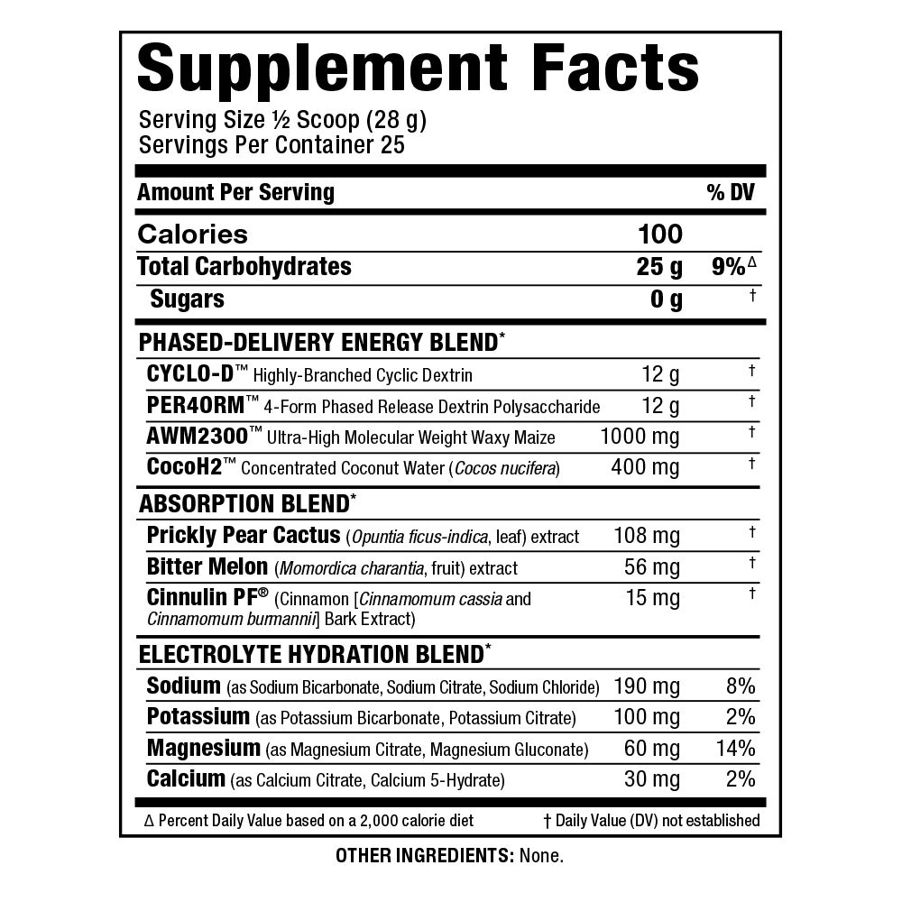 Carbion is a blend of super fast absorbing carbohydrates such as Cyclic Dextrin - a soluble form of carbohydrate that's perfect pre, intra, and post-workout to power your training to new levels and refuel your body after a taxing workout - and slow absorbing carbohydrates such as Per4orm (4 form phased release dextrin polysaccharide), to keep your body fueled throughout even the most grueling of training sessions! Carbs also help to support the recovery of your muscles after exercise, so you can continue to push your body to the limits. Carbion is also loaded with an "Electrolyte Hydration Blend" to keep your body fueled and hydrated throughout your workout and also allow for peak muscle contractions so you get the most out of every rep! This epic combination allows you to maintain blood glucose levels longer so you won't crash in the middle of your workout and you can push your body longer and harder at even the highest level of performance!