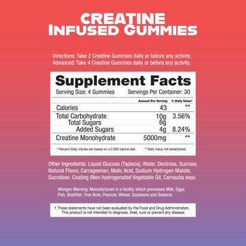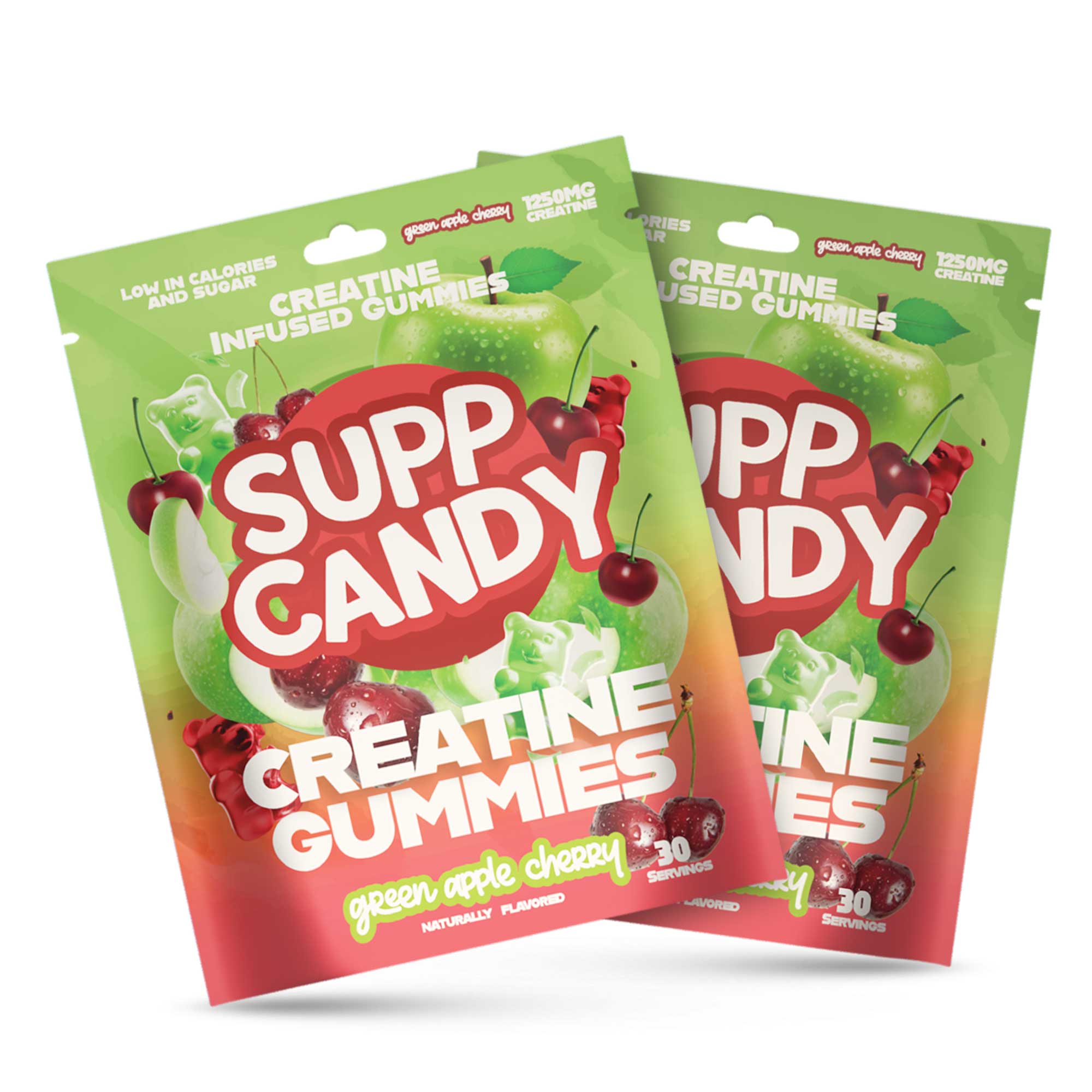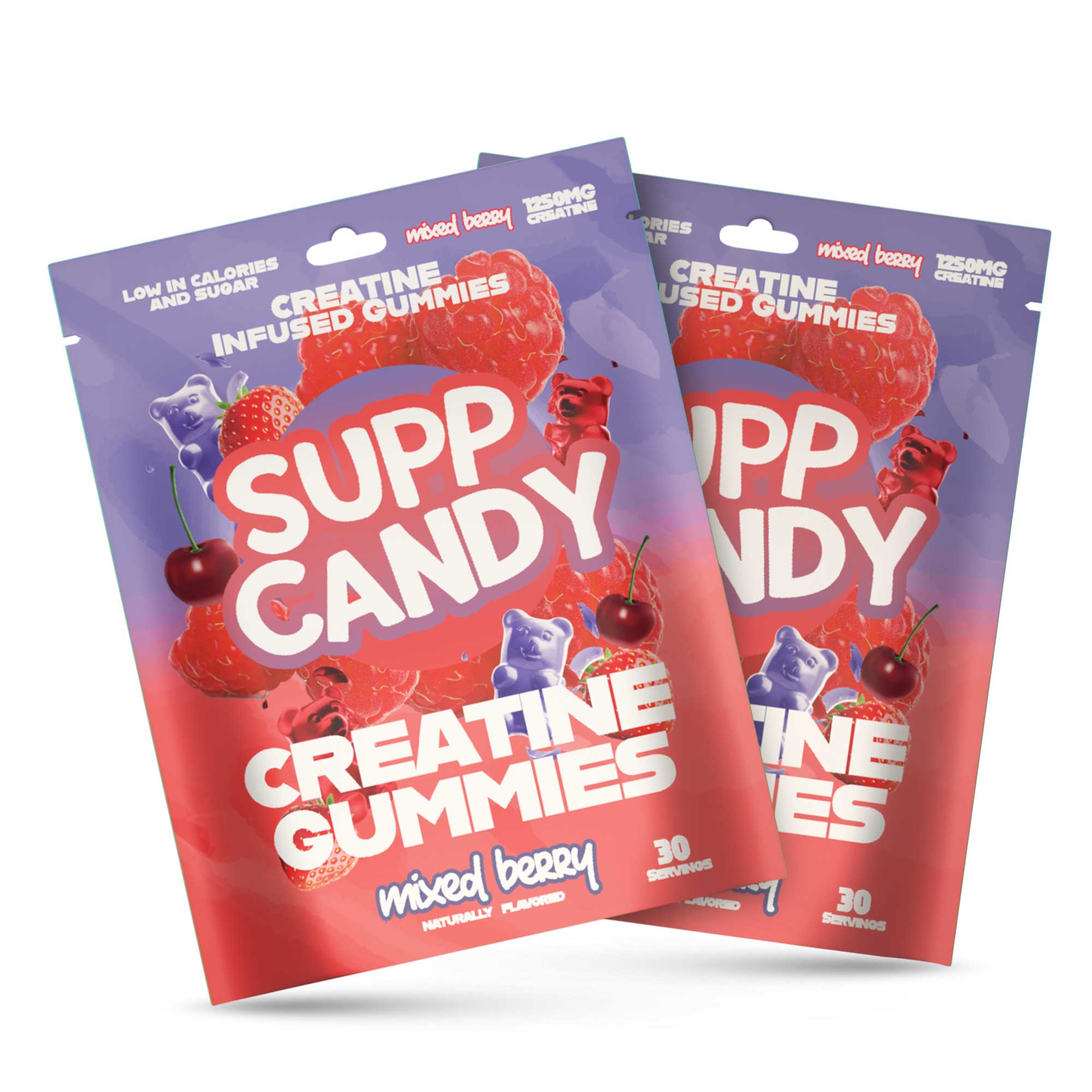 Supp Candy Creatine Gummies Mixed Berry 120ct deliver 5 grams of creatine per serving, supporting muscle strength and recovery effectively. These gummies offer a convenient, flavorful alternative to traditional creatine powders, making supplementation easy and enjoyable. Ideal for those seeking a tasty and practical way to meet their creatine needs without measuring or mixing powders.