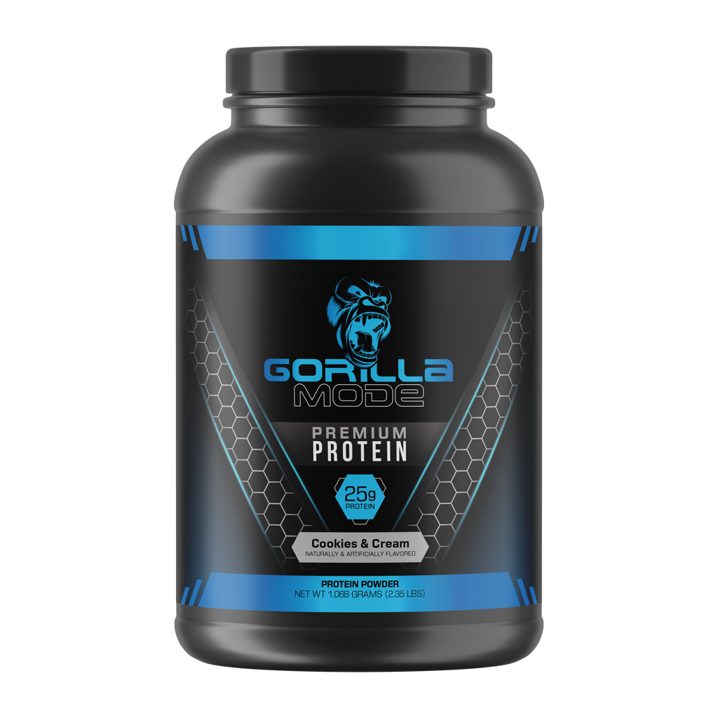 Presenting Gorilla Mode Protein: the epitome of whey protein excellence, now with an upgraded formula that prioritizes quality and transparency. Gorilla Mode's Premium Protein blend focuses on whey isolate, ensuring you receive the highest quality protein with minimal lactose and fat content. Each serving delivers a hefty 25 grams of protein, primarily sourced from whey isolate 90%, complemented by whey concentrate 80%. That's on top of being formulated to provide 30 servings per bottle, so you get more value compared to similar products on the market.