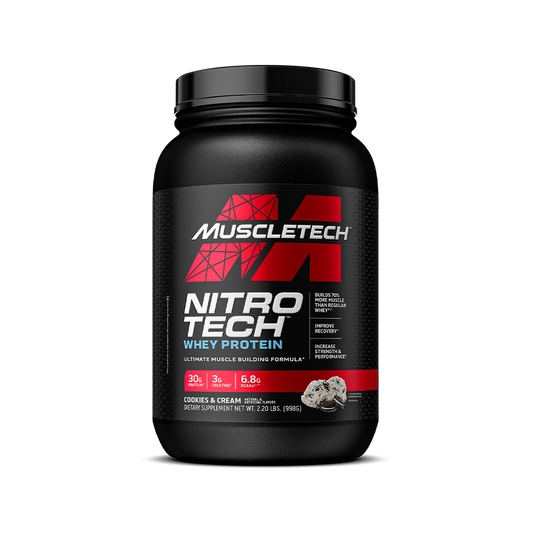 Unleash your inner powerhouse with Nitro-Tech by MuscleTech! This scientifically formulated protein blend is your go-to for building lean muscle and crushing workout goals. Packed with a whopping 30g of high-quality whey protein isolate, Nitro-Tech is the perfect choice for fitness enthusiasts looking to step up their performance. Plus, it’s loaded with 3g of creatine monohydrate, the proven king of creatines, to help enhance muscle strength and recovery.
