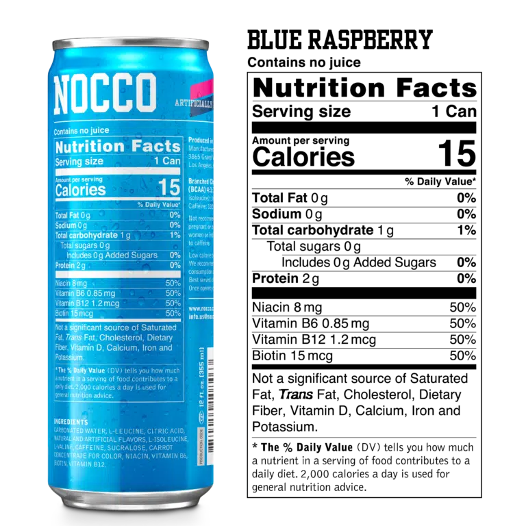 Blue Raspberry: Get ready to experience a burst of vibrant sweetness and tanginess like never before with NOCCO Blue Raspberry. This sugar-free, carbonated concoction isn't just an energy drink... it's a mood lifter on a warm day, reviving your senses with its refreshing kick!