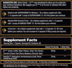 Stacked with SUPERHUMAN pre-workout: As a dietary supplement, take 1-2 capsules with 1 scoop of SUPERHUMAN 15-30 minutes before your workout.