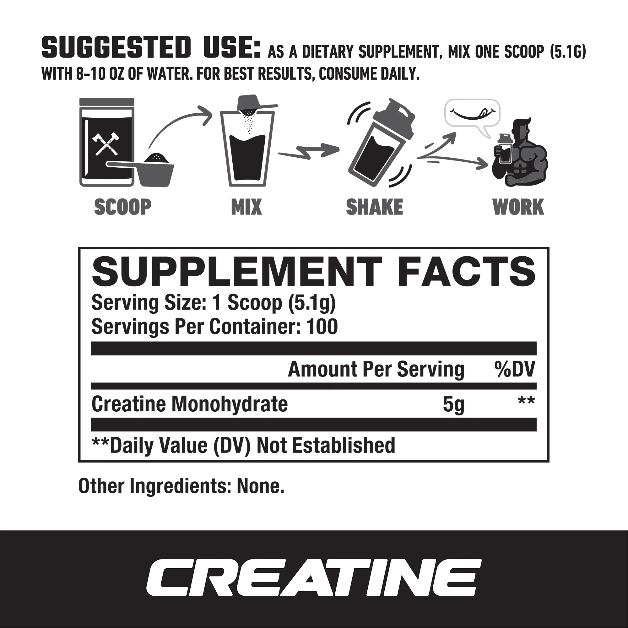 Axe & Sledge Creatine contains 100% pure creatine monohydrate, which just so happens to be the version of creatine with the most clinical-studies supporting all of these incredible benefits for athletes and lifters. Whether you're an elite athlete looking to optimize performance in your chosen sport, a regular gym goer looking to increase performance, increase strength, and build lean muscle, or a weekend warrior who wants to get the most of your training, Axe & Sledge Creatine is perfect for those looking to increase performance.