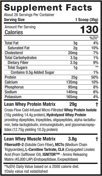 On top of the quality and extravagant flavors, Lean Whey is also formulated with a Lean Muscle Matrix, which is a combination of L-Carnitine Tartrate, MCTs (Medium Chained Triglycerides), and CLA (Conjugated Linoleic Acid).