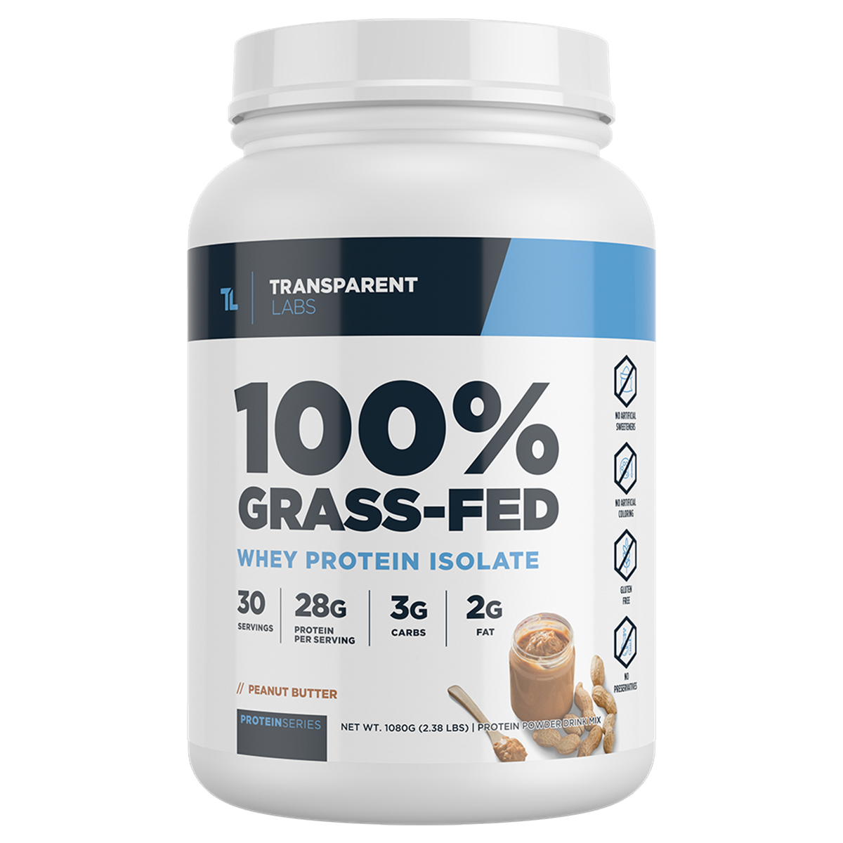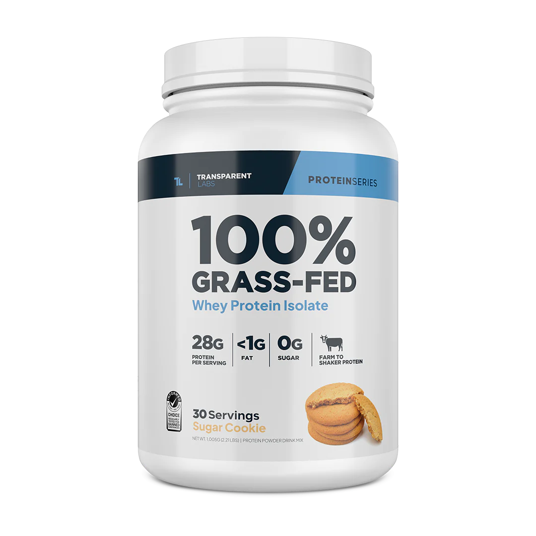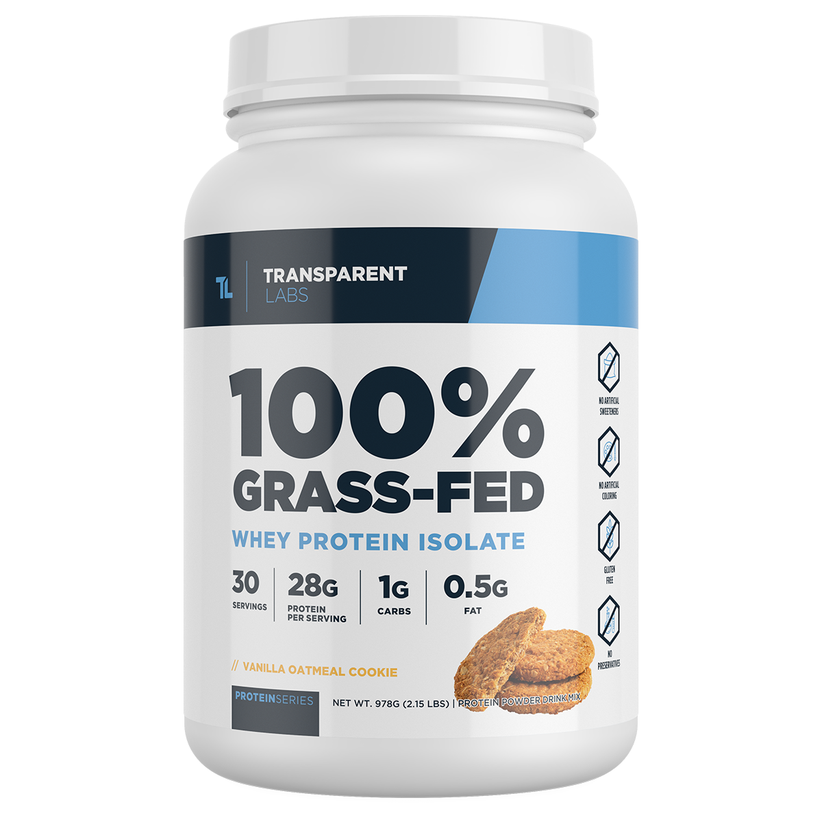 The first product in Transparent Labs' Protein Series is 100% Grass-Fed Whey Protein Isolate sourced from grass-fed American Cows! It contains one of the industry’s highest protein-by-weight ratios at 88% (28 grams of protein per 32 gram scoop). Made from naturally fed, hormone-free cow whey and clean of artificial sweeteners, food dyes, gluten, and preservatives, Transparent Labs 100% Grass-Fed Whey Protein Isolate is one of the cleanest proteins on the market. It’s perfect for post-workout recovery and hitting daily protein goals. Whether you are trying to build muscle or lose weight, protein is an essential component and tool for success. Please note: Cookies & Cream flavor is NOT Gluten Free.