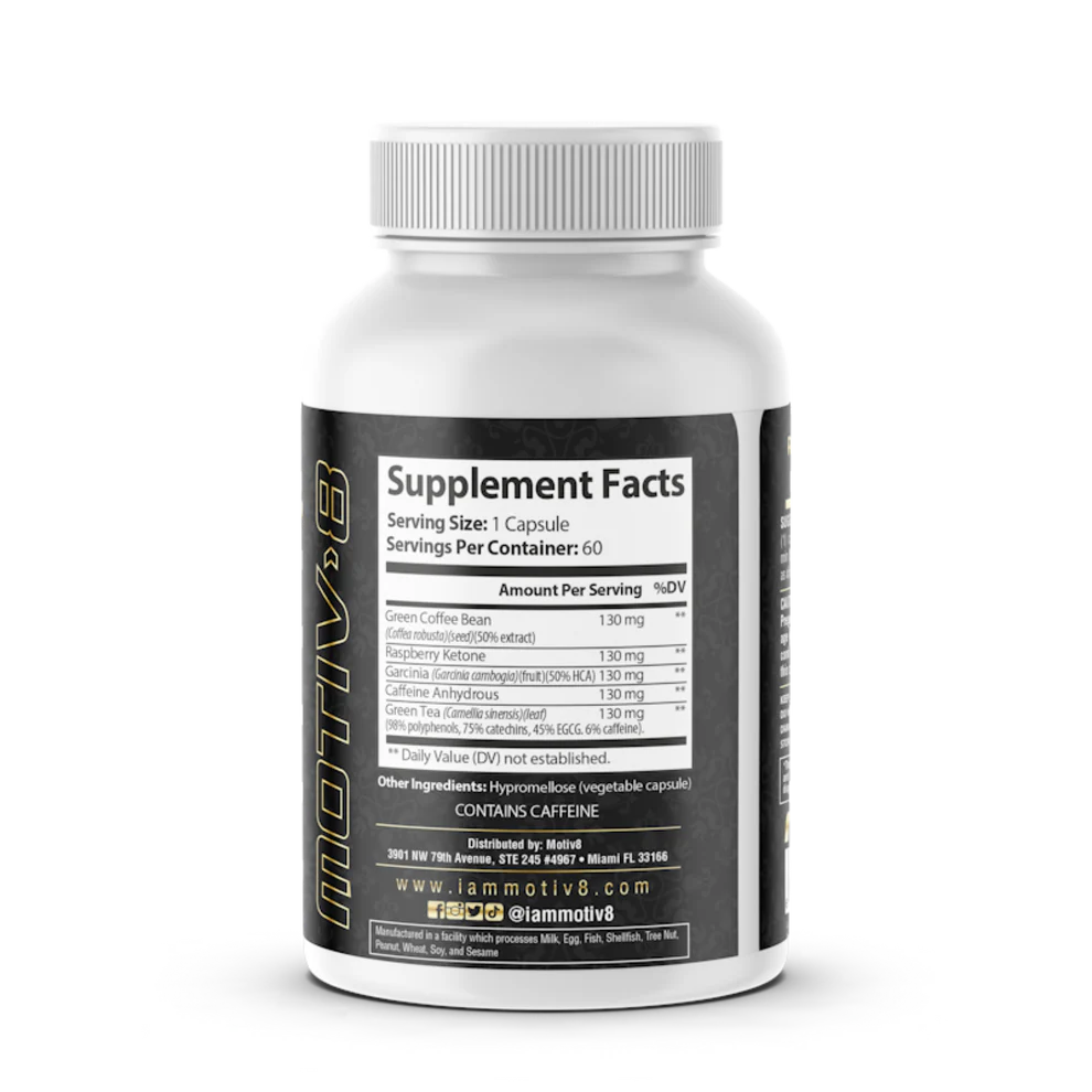Are you on the lookout for something to take your fat loss journey to the next level? Whether you're a pro bodybuilder looking to shred down for your next show, or just on a journey to obtain the body you want; Motiv8 Burn will help you get lean fast and help you obtain the body you desire. Burn is comprised of a revolutionary "Burn Matrix" containing fat incinerating and metabolism boosting powerhouses. This unique and potent combination attacks fat loss at every angle from increasing fat oxidation (turning fat into energy) to enhancing fat burning in hard to reach areas like the abdomen area, to improving mood while reducing appetite to cut out cravings, all while ramping up your metabolism. You'll get all of the benefits of the mega popular Motiv8 Burn powder, in the convenience of capsules. This version will hit you harder than the Burn powder since it's a concentrated dose hitting all at once. Motiv8 Burn is here to keep you on track and take your results to the next level.