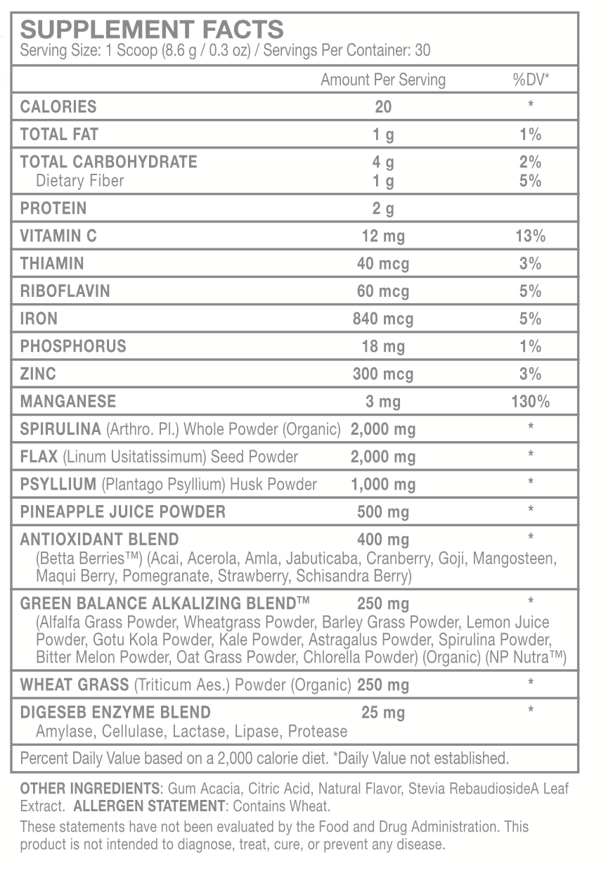 Directions: Enjoy 1 scoop of greens daily in 12-16oz. of cold water, milk, or non-dairy alternative. Greens powder can also be mixed into your favorite cocktail.