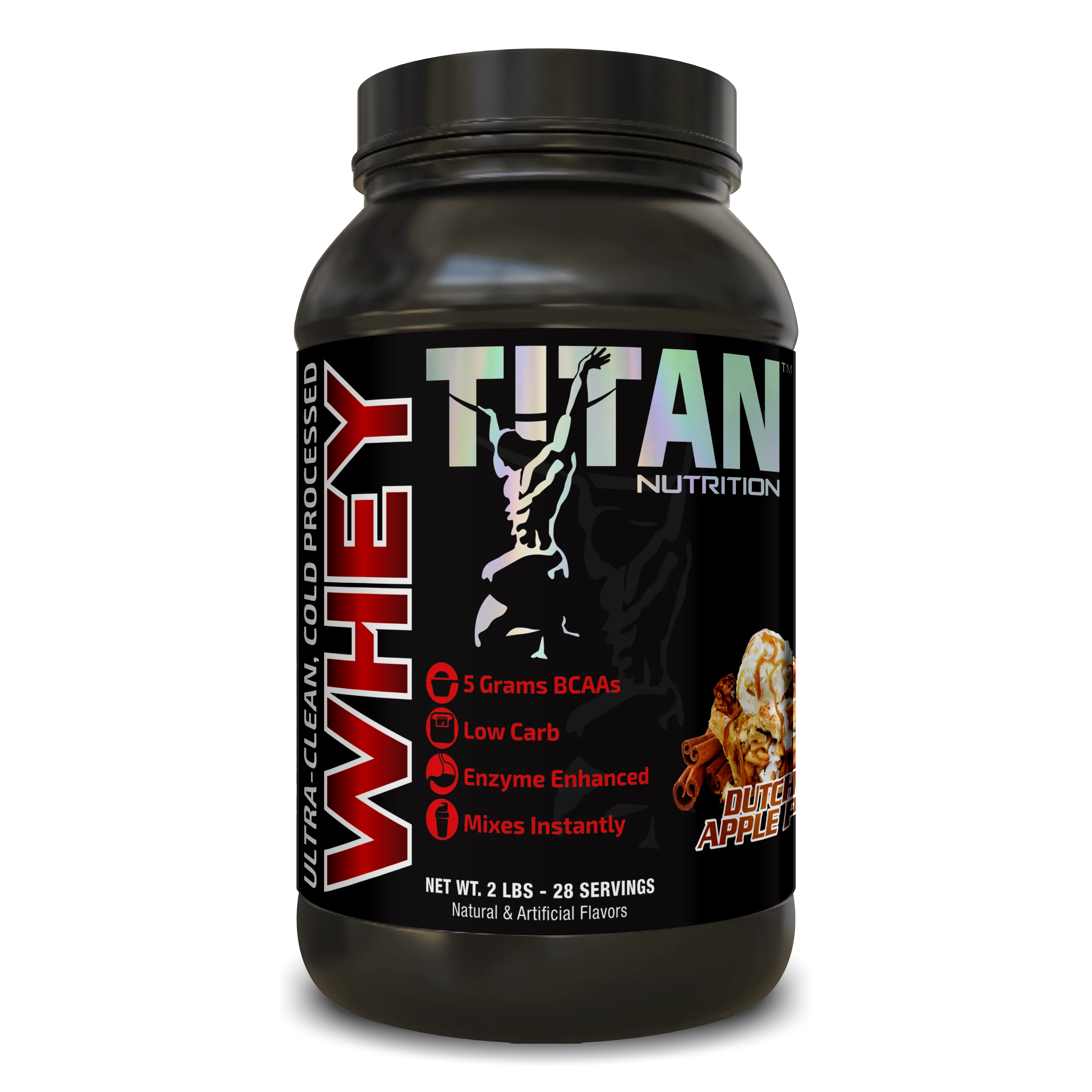 Titan Whey is loaded with muscle building and muscle repairing fuel, delivering 25 grams of ultra-high quality protein per serving from 3 different sources - Whey Protein Isolate, Whey Protein Concentrate, and Milk Protein Isolate. It also contains all 9 essential amino acids, including 6 grams of Branched-Chain Amino Acids (BCAAs), which starts off with 2.5 grams of L-Leucine. BCAAs are absorbed directly into muscle, but are depleted during intense training. L-Leucine is the BCAA responsible for initiating muscle protein synthesis (mTOR); the process that builds muscle and speeds recovery.