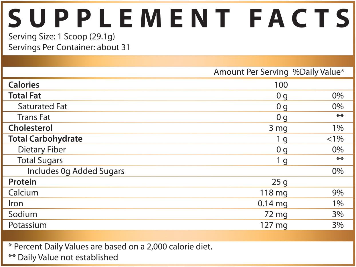 • 25 grams of Grass-Fed Whey Isolate per serving
