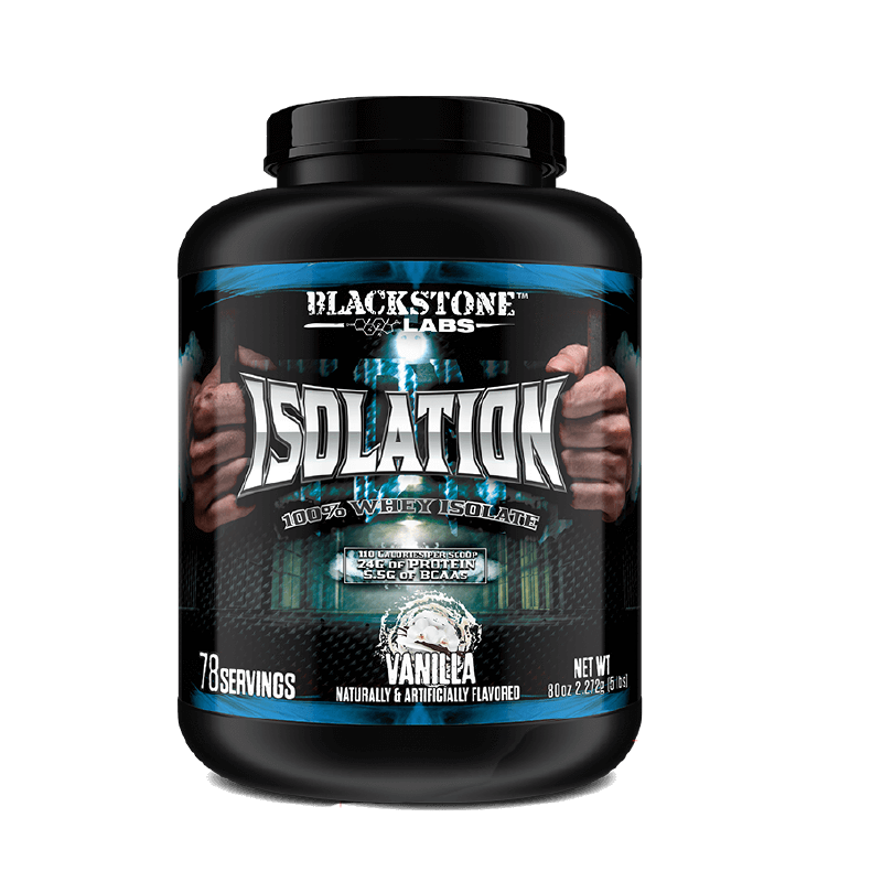 Want more muscle growth? Want better muscular recovery between workouts? Want a better physique? Want to makes outstanding strength gains? What do you need to accomplish these goals? You need quality protein, and LOTS of it. Without adequate amounts of protein, no matter how hard you train, your muscles simply will not grow. For those of you cutting weight/dieting, lack of quality protein can drastically reduce lean body mass, muscle strength, and function. Isolation by Blackstone Labs is the perfect way to ensure you are not only meeting daily protein needs, but feeding your body high-quality protein too. Every serving of Isolation is packed with 24 grams of high-quality whey protein isolate, including 5.5 grams of BCAAs, which support muscle metabolism.