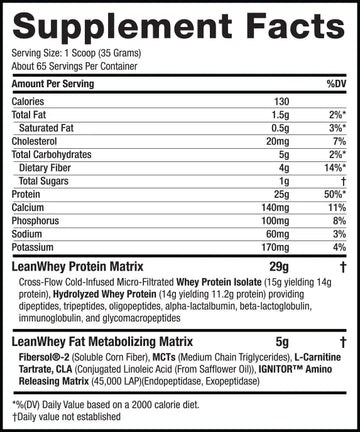 On top of the quality and extravagant flavors, Lean Whey is also formulated with a Lean Muscle Matrix, which is a combination of L-Carnitine Tartrate, MCTs (Medium Chained Triglycerides), and CLA (Conjugated Linoleic Acid).