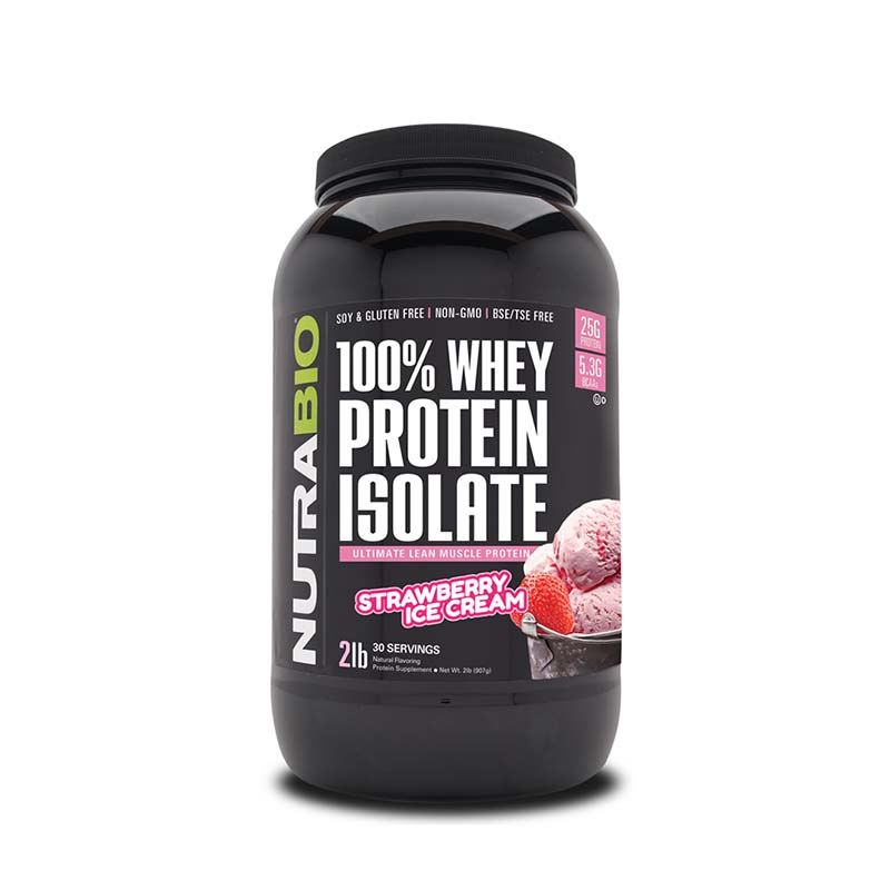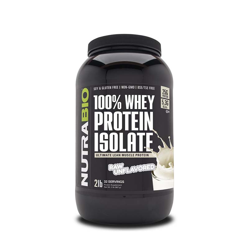 Unleash the power of purity with NutraBio's 100% Whey Protein Isolate – a scientifically formulated protein supplement designed to maximize muscle growth, enhance nitrogen retention, and accelerate repair processes. As a fast-acting whey isolate, it provides 25 grams of high-biological value protein, over 5g of BCAAs, and 4g of glutamine precursors – all sourced exclusively from 100% Whey Protein Isolate.