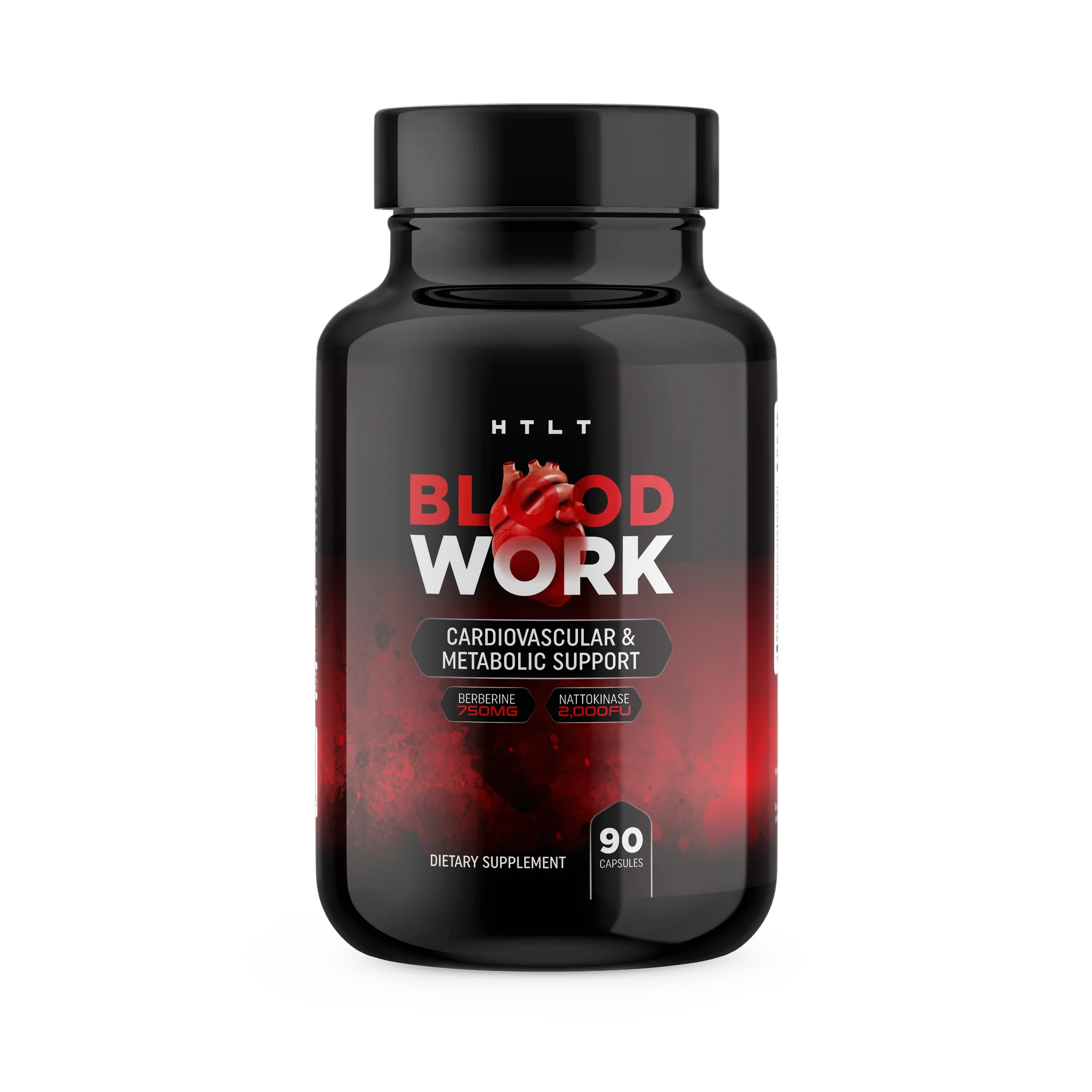 BloodWork, a powerhouse supplement crafted to support your body's vital functions. This blend is designed for those looking to optimize their health markers and maintain balance. It's packed with potent ingredients, like berberine and nattokinase, known for their roles in promoting heart and metabolic health. Whether you're aiming to enhance your fitness routine or support overall well-being, BloodWork is your ally in the quest for vitality.