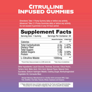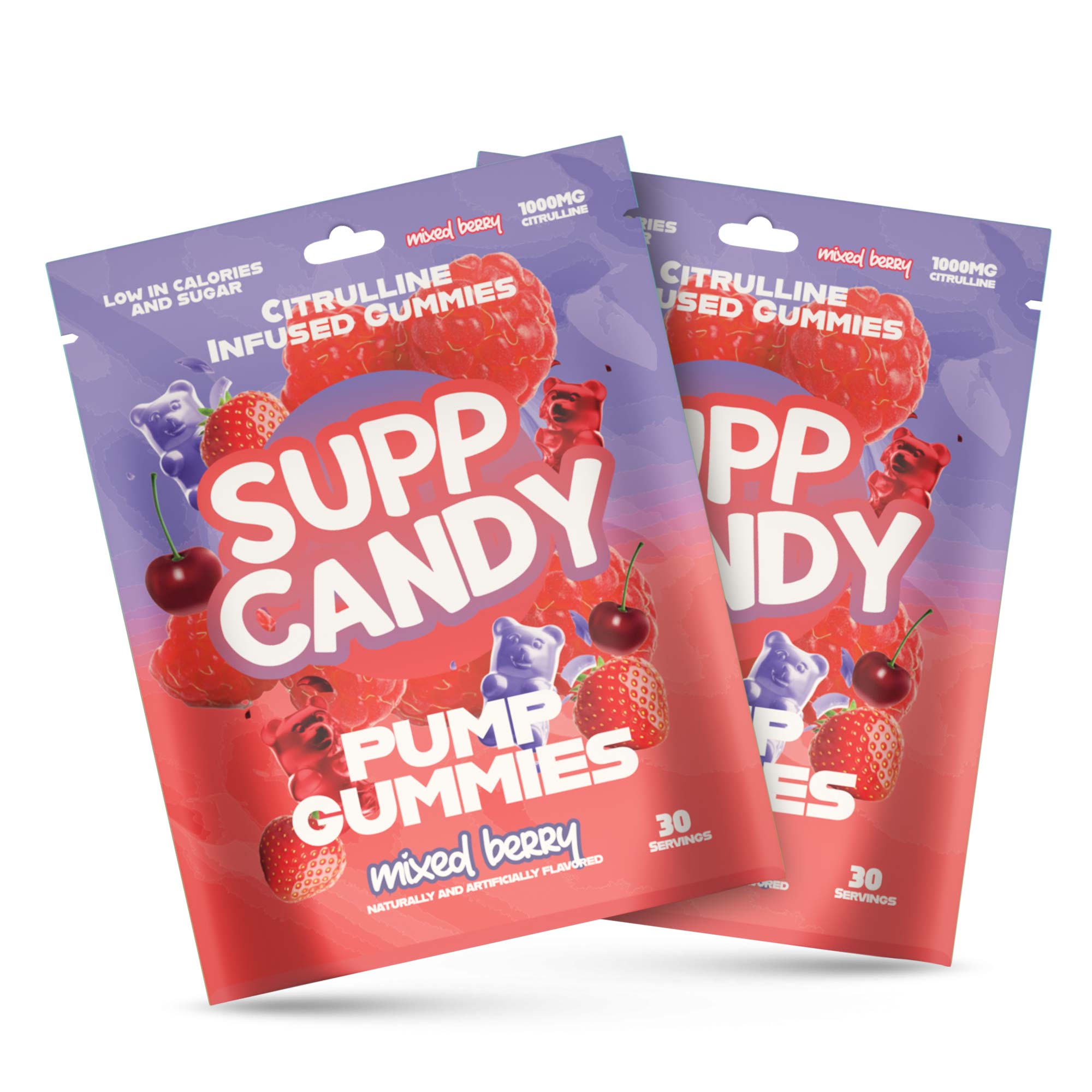 Supp Candy Pump Gummies deliver 1000mg of citrulline per serving in a convenient, flavor-packed gummy form. Designed for those seeking a low-calorie, low-sugar pre-workout boost, these gummies eliminate the need for shaker bottles or measuring scoops—just unwrap and go. Perfect for on-the-go energy and enhanced blood flow, they support your workout performance with ease and precision.